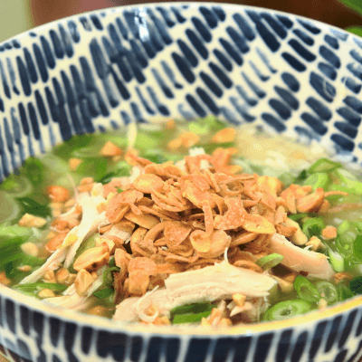 Soupe de riz à la thaïlandaise avec bok choy et gingembre