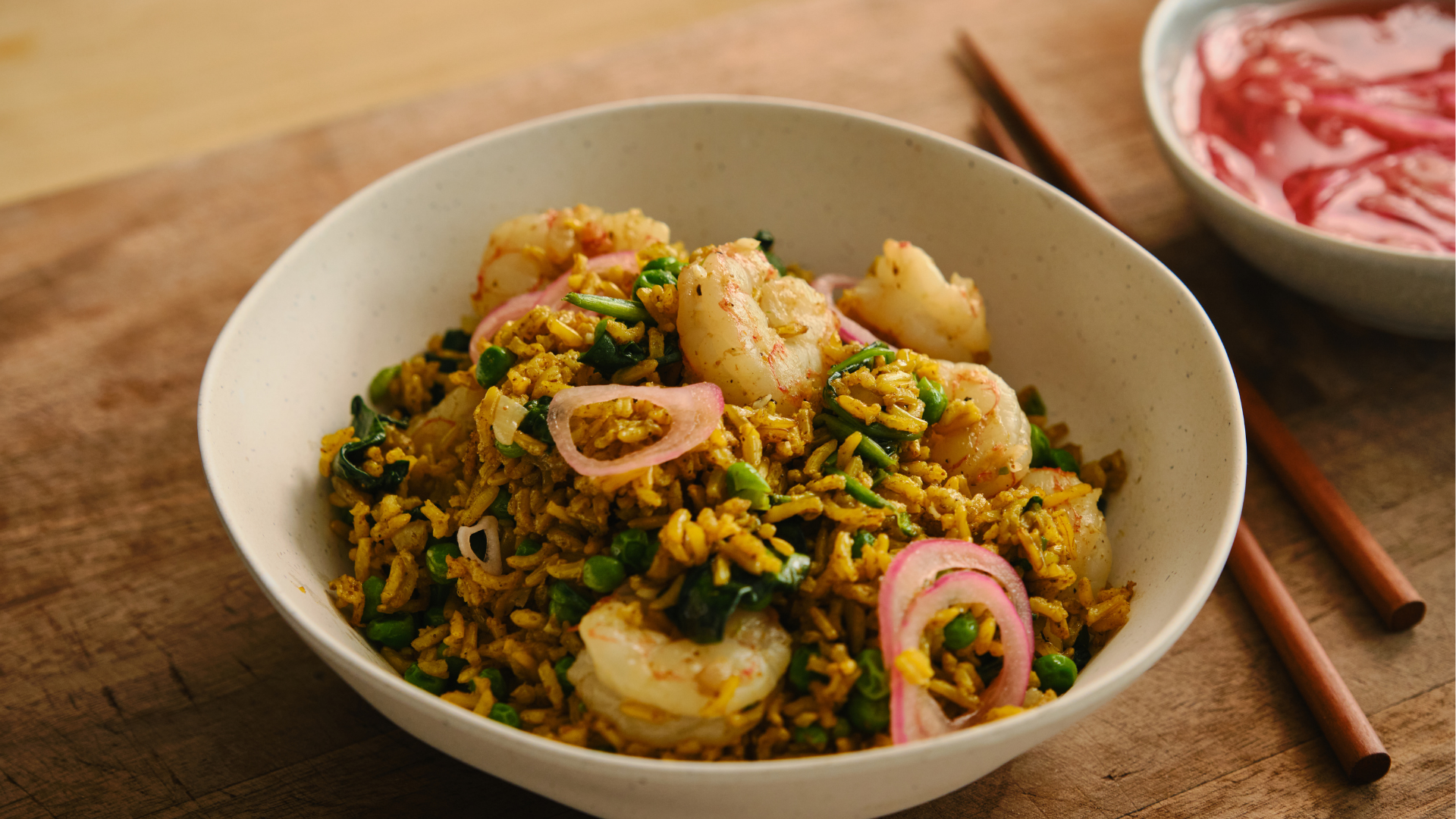 Lorsque la cuisson du riz est terminée, versez le mélange de crevettes dans le cuiseur à riz et incorporez délicatement le mélange au riz. Fermez le couvercle et laissez reposer pendant 5 à 10 minutes avant de servir.