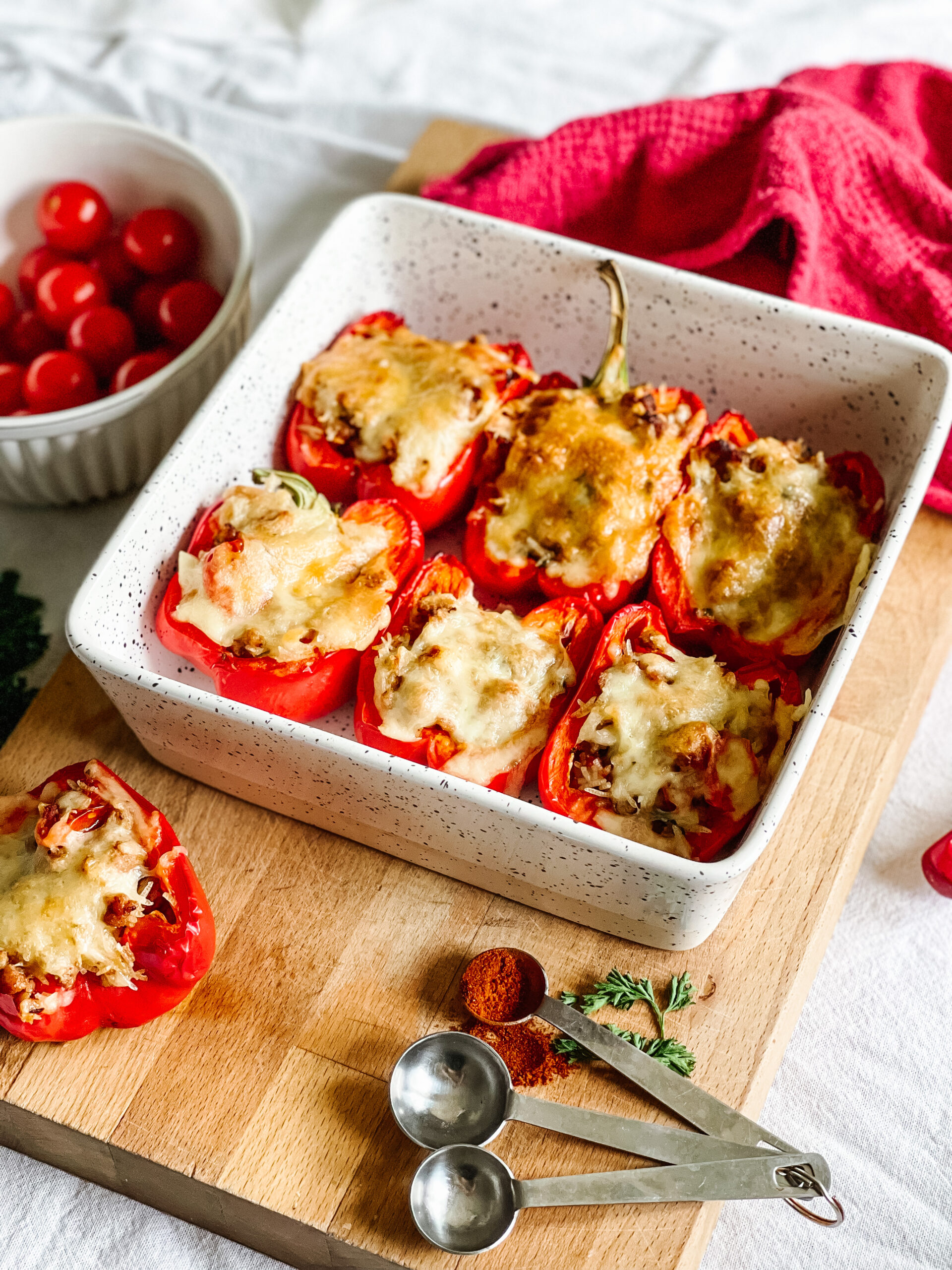 Faites cuire jusqu’à ce que les poivrons soient tendres et que le fromage soit fondu et doré. Saupoudrer le reste du persil sur le dessus avant de servir.
