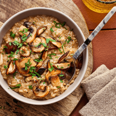 Ajouter le riz, et remuer. Ajouter le vin et remuer jusqu’à ce qu’il s’évapore. Ajouter le bouillon petit à petit, en attendant qu’il se fait absorber avant d’en rajouter. Remuer doucement le contenu pour environ 35 minutes pour atteindre un résultat doux et crémeux.