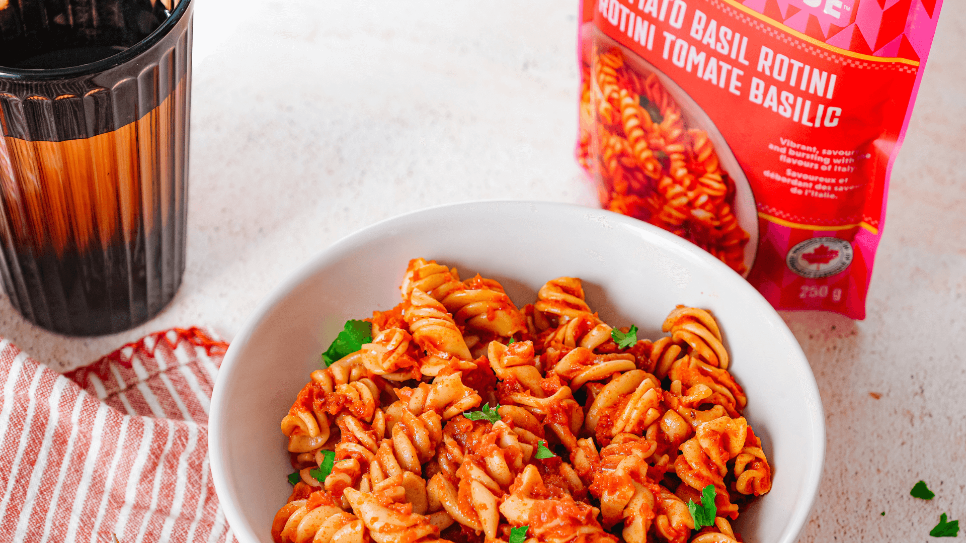 Dainty introduces convenient and flavourful pastas like this Tomato Basil Rotini, made by Canadians for Canadians.