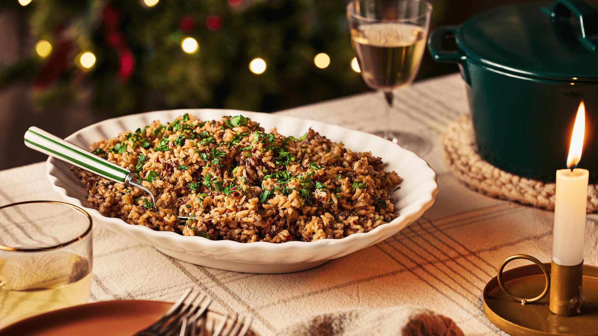 A scrumptious side dish to serve for a party or to bring to a potluck, make it vegetarian by using vegetable broth.