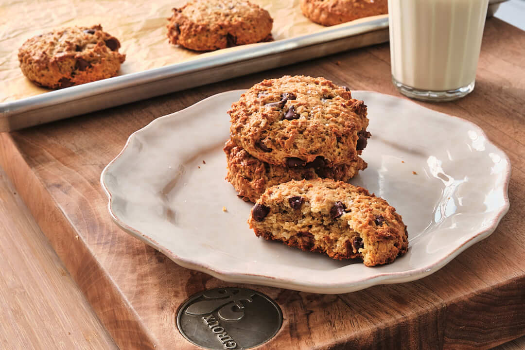 In a clean 1L Mason jar, layer the dry components in this order: Oats, Flour, sugar, baking powder, salt, coconut, chocolate chips, and nuts if using. Seal and add a holiday ribbon.