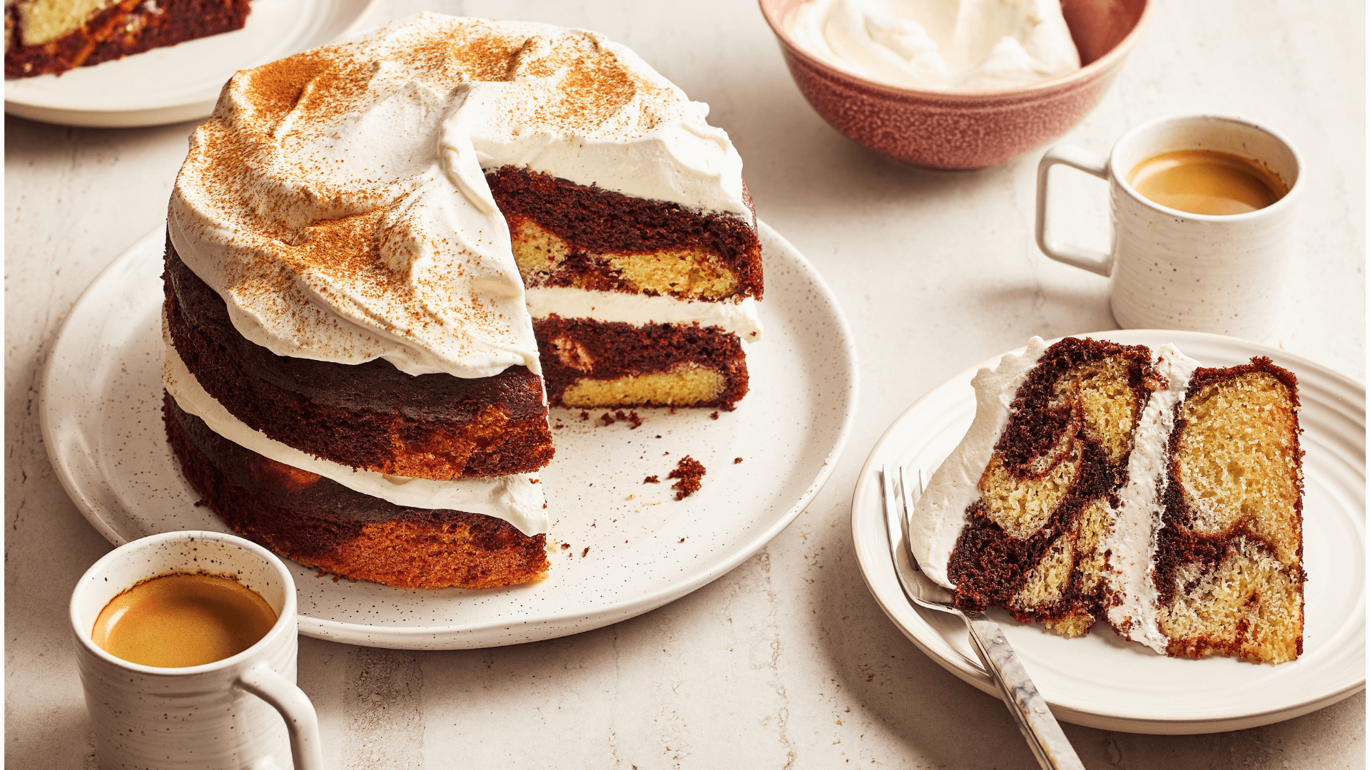 Use a butter knife to gently swirl the batters together in a figure-eight motion. Do not overmix.