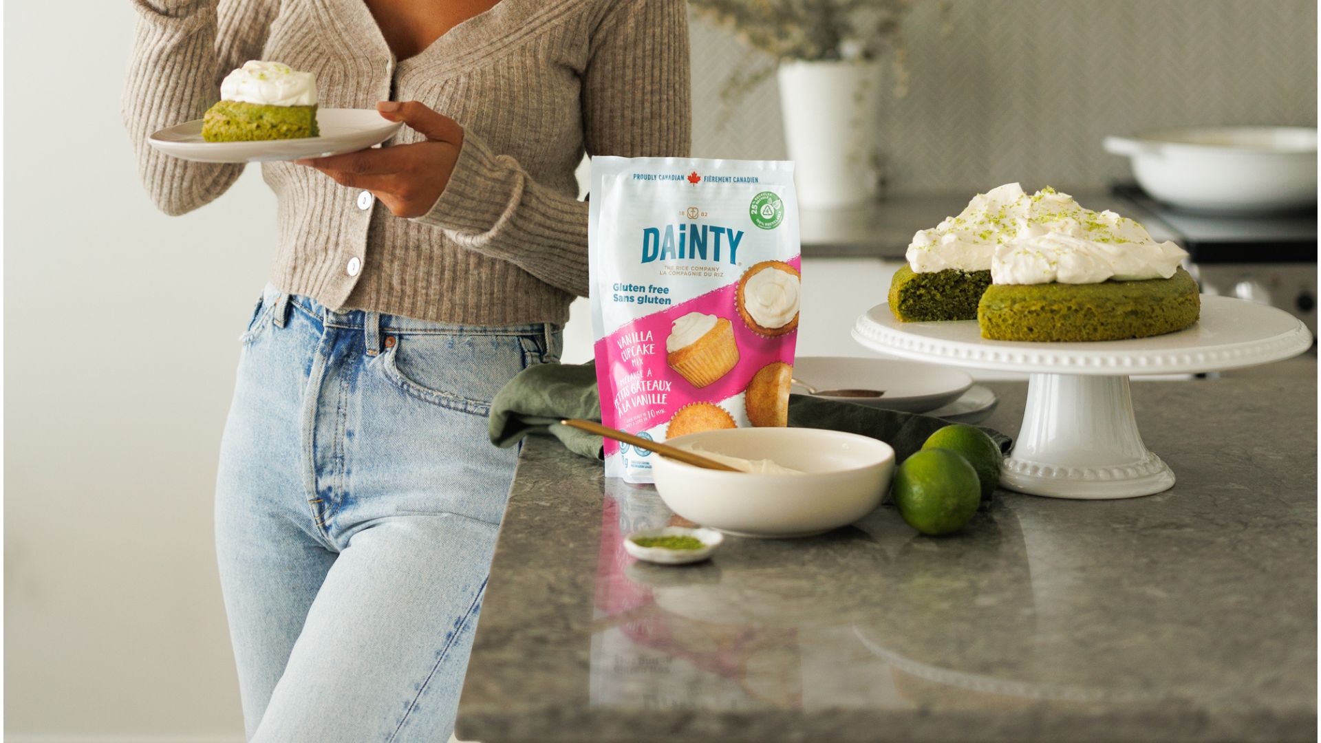 Pour the Vanilla cupcake mix into a large bowl. Add the matcha powder and blend.