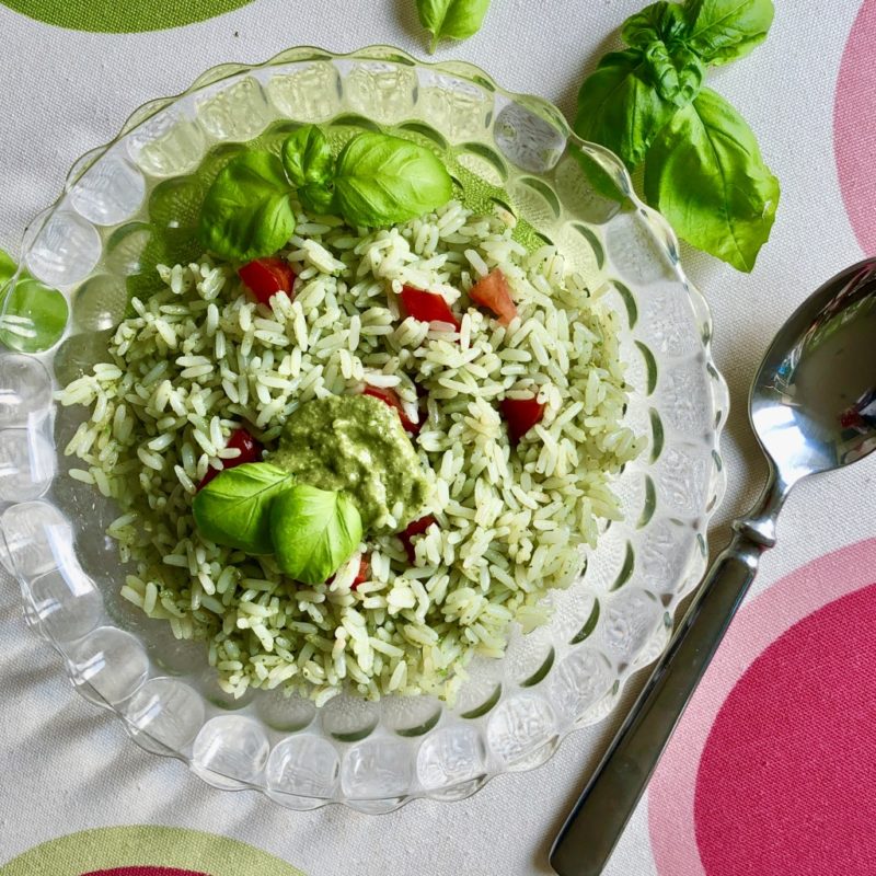 When rice is cooked, add the pesto to the bowl and stir to combine. Season with salt and pepper to taste.